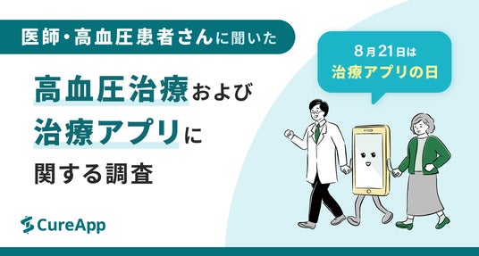 株式会社CureApp(キュア・アップ / 本社:東京都中央区 代表取締役社長:佐竹 晃太以下、当社)は、8月21日に制定した「治療アプリの日」にちなんで、今までに実施した医師および高血圧患者さんに対する高血圧治療および治療アプリについての調査データを解析し、発表いたします。