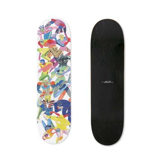 Tシャツ(1種、S~XL展開、税込5,940円)、長袖Tシャツ(1種、サイズ:S~XL展開、税込7,480円)、スウェット(1種、サイズ:S~XL展開、価格:税込8,800円)、パーカー(1種、サイズ:S~XL展開、価格:税込9,900円)、トートバッグ(1種、税込4,400円)、バンダナ(1種、税込3,080円)、ステッカーセット(1種、価格:税込1,650円)、B4ポスター(1種、価格:税込3,850円)、スケートデッキ(1種、価格:税込27,500円 ※受注生産)