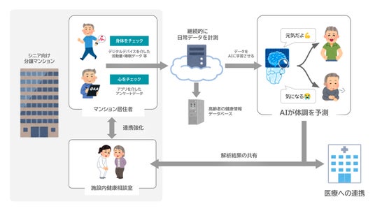 シニア向け分譲マンション「デュオセーヌ」で入居者・スタッフの協力の下、高齢者の健康や日常生活を支援するAI開発に着手