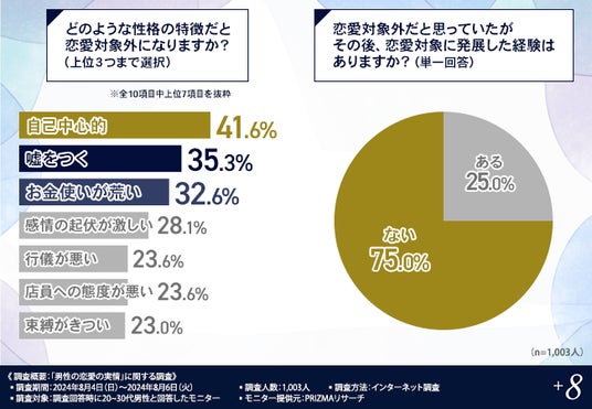株式会社プラスエイト(所在地:東京都新宿区、代表取締役社長:佐々木 啓介)は、20代~30代の男性を対象に、「男性の恋愛の実情」に関する調査を実施しました。