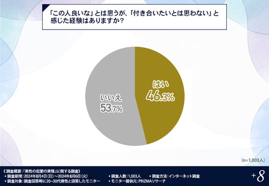 そこで「この人良いな」とは思うが、「付き合いたいとは思わない」と感じた経験はありますか?」と質問したところ、『はい(46.3%)』『いいえ(53.7%)』という回答結果になりました。