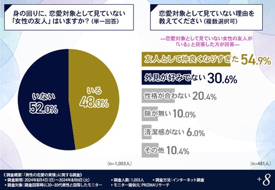 約半数の男性が身の回りに、恋愛対象として見ていない「女性の友人」がいることが明らかになりました。