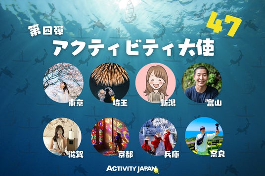 日本最大級の国内アクティビティ予約サイトを運営する株式会社アクティビティジャパン(KKdayグループ、本社:東京都新宿区、以下 アクティビティジャパン)は、この度、東京都、埼玉県、新潟県、富山県、滋賀県、京都府、兵庫県、奈良県の8名のアクティビティ大使を新たに任命いたしました。
