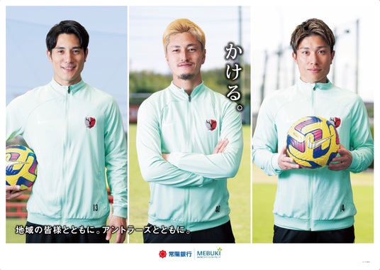 常陽銀行の2024年イメージキャラクターの鈴木優磨選手、知念慶選手、樋口雄太選手の等身大パネルと一緒に写真が撮れる特設フォトブースを設置します。