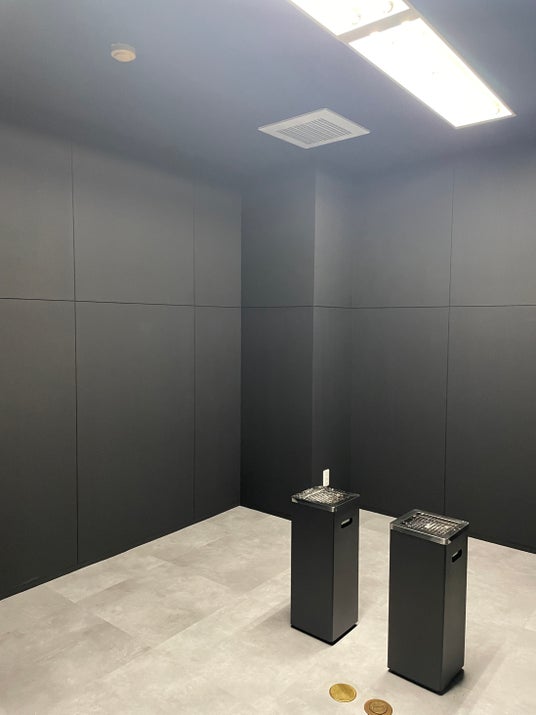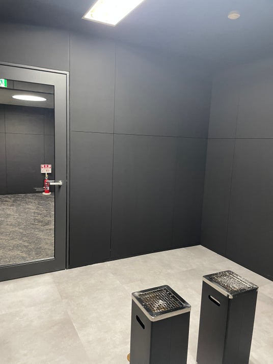 8階喫煙室も共用部と合わせ壁・床・天井を張替え、落ち着きのある空間になりました。