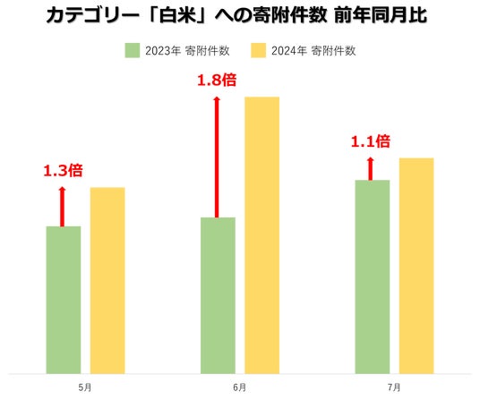 一方で、一部の自治体では、9月以降の寄附は来年の予約分として対応するなど、【令和6年度産の新米予約】を既に始めている自治体も多く見られ、ふるさと納税においては、今年の新米に照準を合わせた動きが見受けられました。