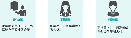 現在、企業出向型/副業型/転職型の候補企業・人材を募集中です。