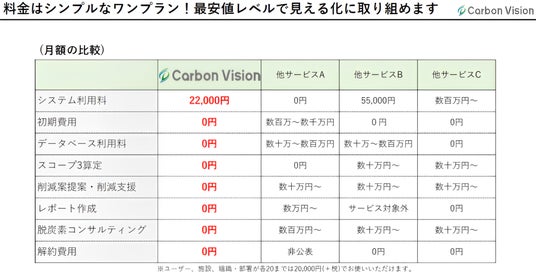 一方、中小企業においても脱炭素への取り組みが求められていますが、中小企業が取り組み続けられる料金形態で提供されているCO2見える化サービスはありません。