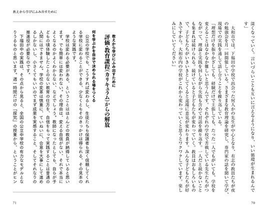 いずれの学校も、内在的に改革を進めることによって、自分たち自身がめざしている学校を徐々に形にしていることに大きな喜びを感じていることぜひ読み取っていただきたいと願っています。改革は喜びを伴わないと首尾よく進まないのです。