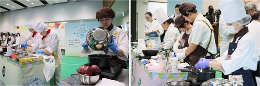 全国の高校生を対象に4部門ごとにレシピを募集し、応募総数721組の中から書類審査で選ばれた各部門3組の計12組が決勝大会に出場。120分の調理審査に臨み、一流シェフ4人による厳正な審査の結果、各部門の最優秀賞である大熊町賞(キウイ部門)に佐藤玲奈さん(神奈川・湘南高等学校)、富岡町賞(パッションフルーツ部門)に本田美月さんと坂越椿姫さん(熊本・慶誠高等学校)、楢葉町賞(サツマイモ部門)に濱部ゆらさんと野元侑里さん(鹿児島・神村学園高等部)、広野町賞(バナナ部門)に井元ひよりさんと毛利美琴さん(熊本・慶誠高等学校)がそれぞれ輝きました。