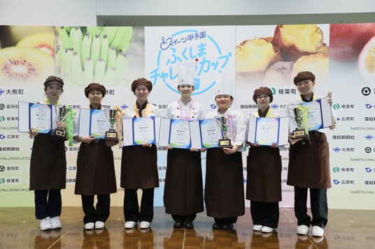 最優秀賞の高校生らには、審査員を務めたシェフと一緒に各町の特産品を使ったスイーツを開発する副賞が贈らました。開発したスイーツは来年2月に東京・代々木公園で開かれる「ふくしまスイーツフェスティバル」(共催・同上)で販売されます。