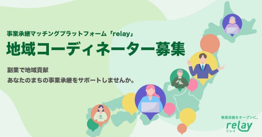 事業承継マッチングプラットフォーム「relay(リレイ)」を運営する株式会社ライトライト(宮崎県宮崎市 / 代表取締役:齋藤 隆太)は、このたび、副業でお住まいの地域の事業承継をサポートする「地域コーディネーター」の募集を開始したことをお知らせいたします。relayが培ってきたノウハウを伝授し、地域の望まない廃業を減らすべくともに活動する方を募集します。