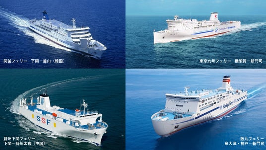 左上:関釜フェリー 右上:東京九州フェリー 左下:蘇州下関フェリー 右下:阪九フェリー