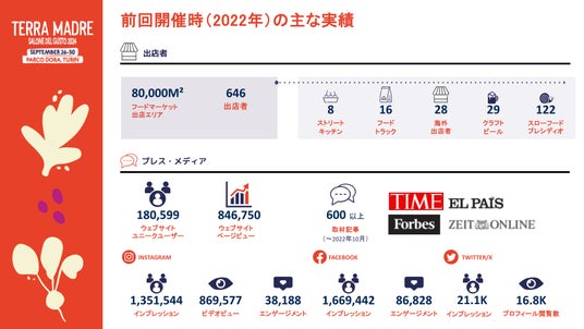 - 前回開催時のハイライト写真: https://media.slowfood.it/Terra-Madre-Salone-del-Gusto-2022