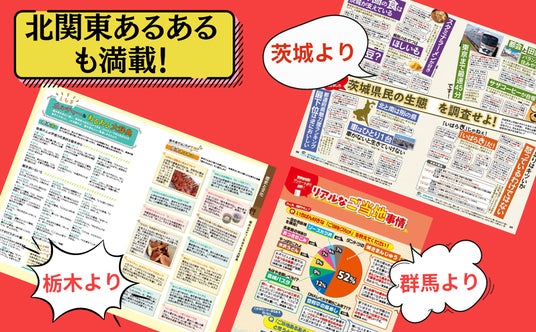 表紙の絵柄だけでなく、「いちばん好きなご当地グルメを教えてください!」「各県の自慢や、 あまり知られていないけど人に教えたいことはありますか?」など、さまざまなアンケートにご回答いただきました。その結果は、各県の誌面の随所にちりばめられています。リアルな群馬県民、茨城県民、栃木県民の姿が浮き彫りに。在住・出身者の人にとっては「あるある!」と楽しめるうえ、意外な県民性が見えてくるかも!? 読んで楽しい、旅すればもっと楽しい、地元愛あふれるガイドブックの誕生です!