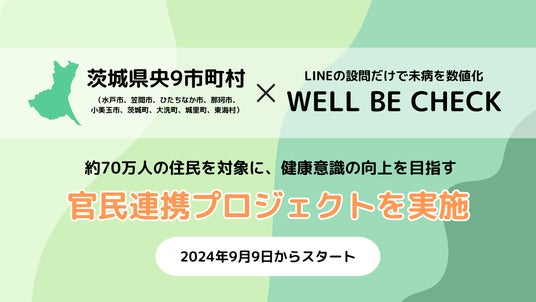 当プロジェクトでは、LINEを活用して未病状態を見える化する「WELL BE CHECK(R)️」を用いて、茨城県央地域に住む住民の健康における行動変容ステージを明確化し、具体的な戦略を持って、健康への意識と関心を高める施策を立案、実行することを目指しています。そのために、住民のニーズをしっかりと把握することで、茨城県央地域が健康先進都市を目指す取り組みを推進していきます。
