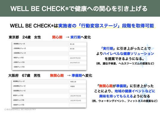 行動変容ステージの引き上げに最適なWELL BE CHECK
