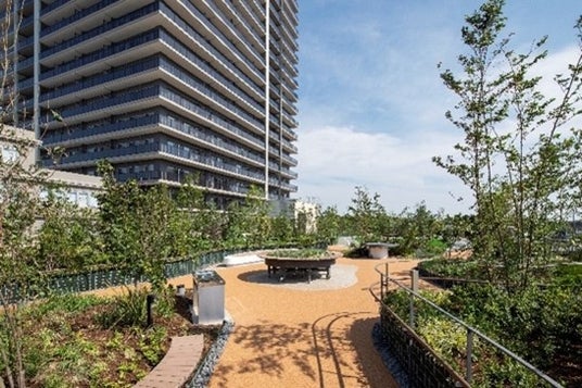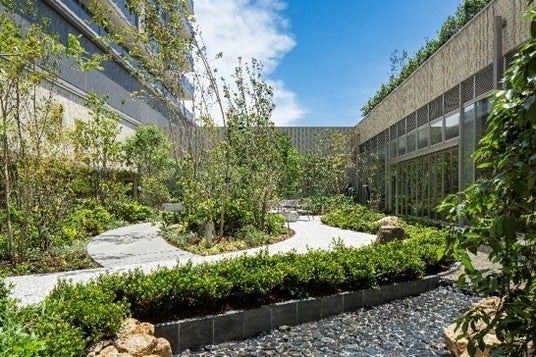 - シリーズ最大規模の植栽と庭園からなる四季折々の風情を楽しめる屋外空間とそれを囲うように配置した共用部