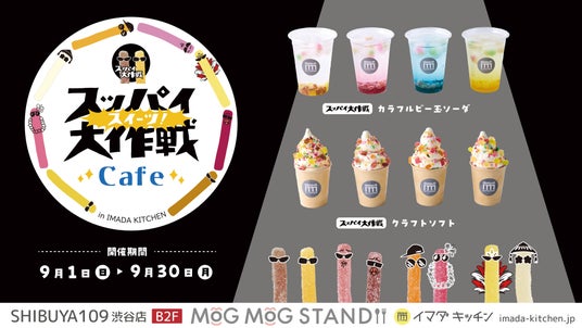 株式会社SHIBUYA109エンタテイメント(本社:東京都渋谷区/代表取締役社長:石川 あゆみ)が運営するSHIBUYA109渋谷店「IMADA KITCHEN(イマダ キッチン)」において、旺旺・ジャパン株式会社(読み:ワンワン・ジャパン/本社:東京都文京区/代表取締役社長:青山 英之)の大人気スティックグミ「スッパイ大作戦」を使用したオリジナルメニューを展開する『スッパイ【スイーツ!】大作戦 Cafe in IMADA KITCHEN』を、2024年9月1日(日)~2024年9月30日(月)の期間限定でオープンいたします。