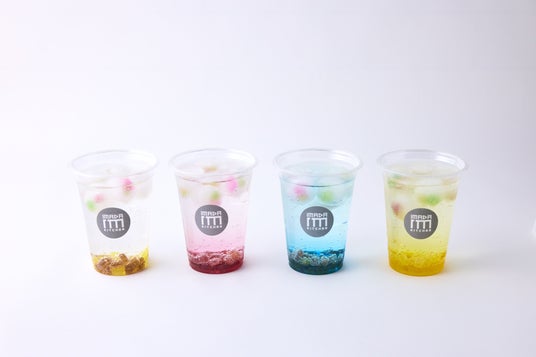 カラフルなビー玉をイメージした、こんにゃくゼリー入り氷を浮かべ、味も見た目も清涼感のあるドリンクに仕上げました。氷が溶けるとこんにゃくゼリーが食べられるので、食感の変化もお楽しみいただけます。