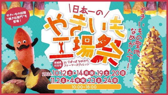 秋の大収穫祭期間中の10月12日(土)~14日(月・祝)、19日(土)、20日(日)、11月2日(土)~4日(月・祝)、23日(土・祝)、24日(日)に、やきいもの聖地なめがたで、やきいもを味わい尽くす「日本一のやきいも工場祭」を開催いたします。工場直送のおいもスイーツ直売や熟成やきいも食べ比べ、おいもスイーツ詰め放題!おいも創作グルメ!の他、工場潜入!工場のおしごと体験など、おいも・おいも・おいもづくしの10日間です。