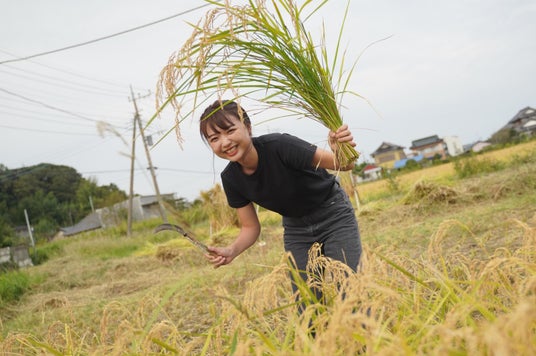 黄金色に育った稲の収穫体験!新米で作るおむすびをお召し上がいただけます。