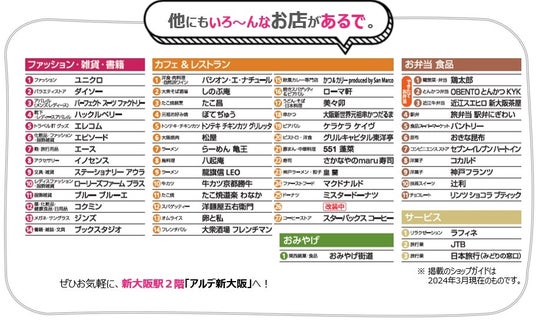 「アルデ新大阪」(運営会社:新大阪ステーションストア)は、大阪・関西の玄関口である新大阪駅の2階(改札外)にあるショッピングセンター。関西の食文化にこだわりながら、出先で便利なお店を揃えております!
