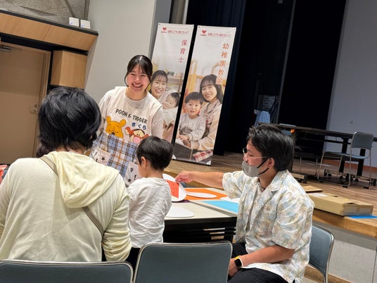 参加した園児からは「お姉さんたちからやさしく教えてもらえてうれしかった」「自分で作ったうちわを毎日使います」、保護者からは「暑い夏に、室内でイベントがあると助かる」「普段関わりがほとんどない専門学生に教えてもらっていて楽しそうだった」などと話していました。