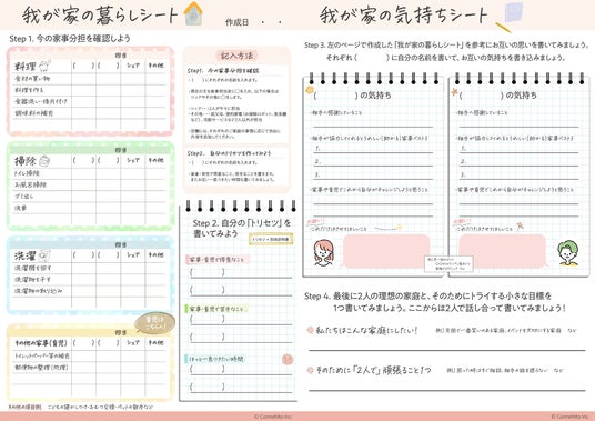 コネヒトの調査(※2)によると、家事・育児の役割分担の納得度が高いと生活満足度が高くなることがわかっています。そこで、それぞれのご夫婦にとって納得感のある家事・育児分担ができるように、話し合うための家事シェアシートを制作いたしました。