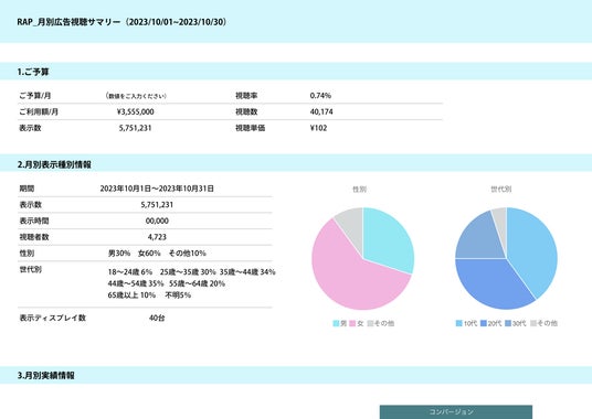 「RAP」はAI学習機能を搭載し、店頭リテールメディアの広告配信の自動化と最適化を実現しました。これにより、デジタルサイネージの広告運用が従来に比べて簡単かつ効率的になりました。広告主、広告代理店、設置店舗側にも大きなメリットをもたらします。視聴広告分析機能で、視聴者の年齢、性別、季節、曜日、時間等のデータを基に最適な広告をターゲットに届けることが可能です。