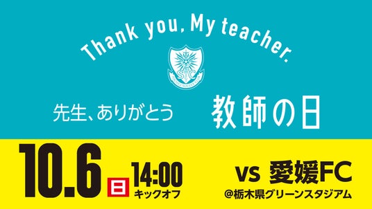 いつも栃木SCを応援いただきありがとうございます。10月6日(日)愛媛FC戦にて「教師の日」の開催が決定いたしましたのでお知らせいたします。