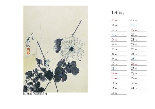 例年好評をいただいてる「南の琳派 田中一村カレンダー」。2025年版は、田中一村作品から代表作ともいえる7点を厳選いたしました。