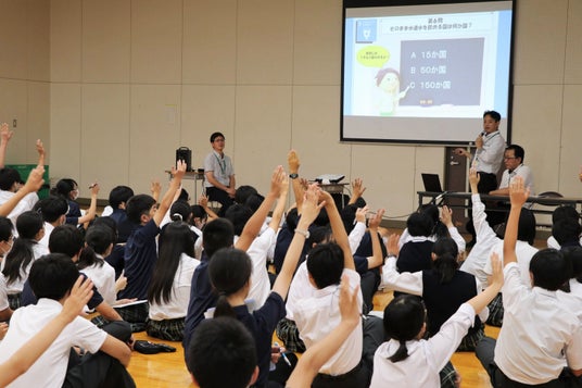 参加するのは1年生129人です。SDGsの目標12「つくる責任つかう責任」や環境問題に焦点を当て、未来に向けた「行動」や「選ぶ」ことの重要性を考えます。「エシカル消費」の考え方も紹介し、普段の暮らしで実践できる行動や選択なども伝えます。