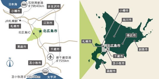 札幌市と新千歳空港の中間に位置し、国道36号や国道274号を中心とした広域幹線道路、道央自動車道、JR千歳線などの交通網が充実した高い利便性を有しています。大都市の札幌市に隣接しながらも、なだらかな野幌丘陵に広がる特別天然記念物野幌原始林を含む森林などの豊かな自然に囲まれています。豊かな緑が息づく環境、ゆとりある土地空間、美しい潤いのある景観、整備された都市機能など、自然と都市機能が調和したまちが形成され、充実した生活環境が市民の生活を支えています。