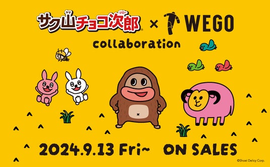 株式会社ウィゴー(本社:東京都港区芝浦 代表取締役社長:園田恭輔) では、株式会社正栄デリシィ(本社:茨城県筑西市 代表取締役社長:中島豊海)が展開する毎日をチョっと明るくするチョコビスケット『サク山チョコ次郎』とのコラボレーションアイテムを2024年9月13日(金)より、全国のWEGO一部店舗及び、WEGO ONLINE STOREの計60店舗にて販売を開始致します。