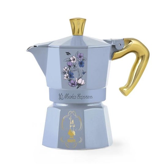 ”ブリジャートン・ブルー”の爽やかで美しい色合いに、ストーリーからインスピレーションを得た繊細な絵柄が施された限定モデルの直火式エスプレッソメーカーです。