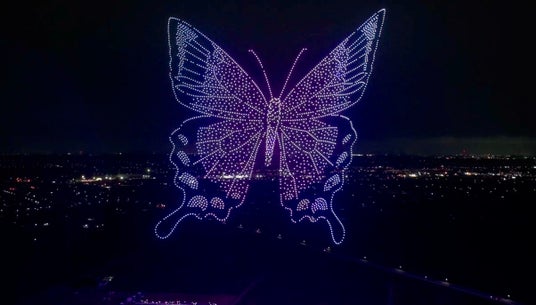 今回の実証実験では、日本史上最大規模(※1)となる3,000機のドローンを使用。蝶の繊細な羽模様やドローンで表現するデジタル花火、さらにドローンの飛行を工夫することにより映像を映し出す「ドローンショースクリーン」を通してまるでスポーツ中継を見ているかのような躍動感溢れるアニメーションなど、機体数が増えることで表現力が飛躍的に向上し、より緻密で臨場感を味わえるショーを夜空で繰り広げられるようになります。