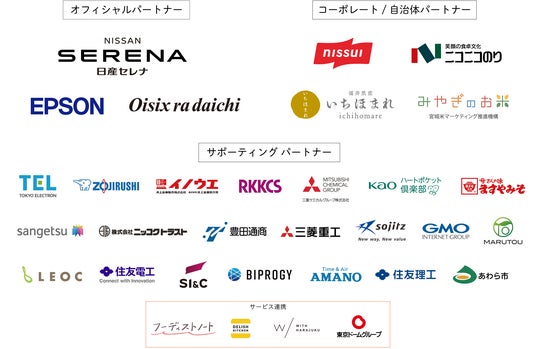 サポーティングパートナー:東京エレクトロン、象印マホービン、井上金庫販売、RKKCS、三菱ケミカルグループ、花王ハートポケット俱楽部、ますやみそ、サンゲツ、ニッコクトラスト、豊田通商、三菱重工業、双日、GMOインターネットグループ、丸東、LEOC、住友電気工業、SI&C、BIPROGY、アマノ、住友理工、福井県あわら市、フーディストノート、DELISH KITCHEN、WITH HARAJUKU、東京ドームグループ