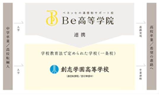 今回の連携により、ベネッセが2025年4月に開校する通信制サポート校「Be高等学院」(以下:Be高等学院)は、創志学園高等学校(本校:岡山県岡山市)が2025年4月に開校予定(認可申請中)の通信制課程「創志学園高等学校通信制課程」の提携校となります。