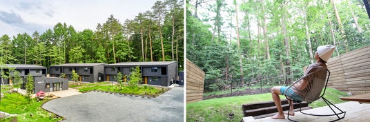 全15室にサウナとウッドデッキテラスを完備しています。森林体験をコンセプトにした本施設は緑豊かな富士山麓の中に建ち、客室専用のウッドデッキテラスでは、サウナの後に森林浴をしながらリラックスすることができます。