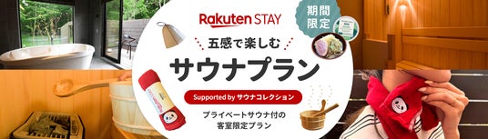 楽天グループ株式会社(以下「楽天」)の宿泊施設ブランド「Rakuten STAY」を運営する楽天ステイ株式会社(以下「楽天ステイ」)は、「Rakuten STAY」の6施設において、サウナをより満喫できるアイテムが付いた宿泊プラン「五感で楽しむサウナプラン」(以下「本プラン」)を期間限定で販売します。本プランは、楽天が運営する旅行予約サービス「楽天トラベル」にて、 9月13日(金)以降の宿泊予約受け付けを本日開始しました。