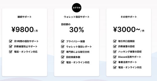 コインレスキュー隊では1ヶ月の継続サポートサービス・Wallet復旧サービス・その他のサポートサービスを中心に提供しております