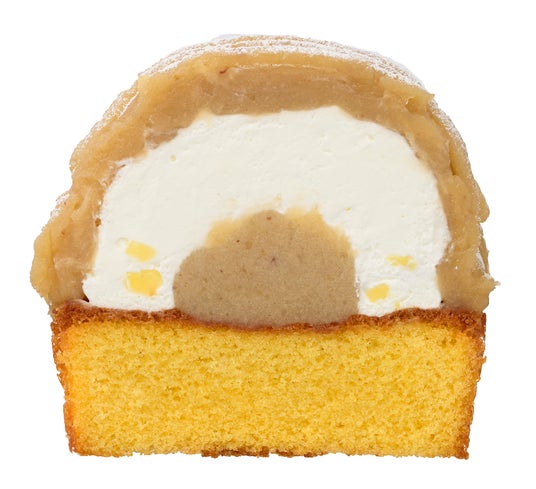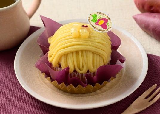 特長:甘味が強くねっとりとした食感が特長のさつまいも「紅はるか」と、ほどよい甘さとホクホクとした食感が特長の「紅あずま」を使用したスイートポテト生地に、生クリーム入りホイップクリームと、紅はるかの甘露煮、芋蜜ソースをトッピングしました。2つのさつまいもの濃密な味わいが楽しめる、ずっしりと食べ応えのある季節限定ケーキです。