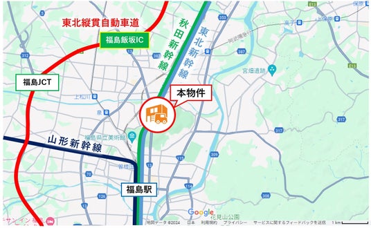 本物件は、東北縦貫自動車道「福島飯坂IC」から車で約7分、福島駅まで車で約10分と、交通アクセスが非常に良好な立地にあります。また、国道13号線沿いには多様な飲食店や60店舗が入る「イオン福島」があり、生活に便利な施設も充実しています。