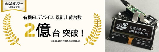 サクサグループで有機ELデバイス、開発・製造受託サービスを提供する株式会社ソアー(山形県米沢市代表取締役 八巻雅敏、以下ソアー)の有機ELデバイス累計出荷台数が、2024年8月に2億台*2を突破しました。ソアーは1997年に有機ELディスプレイの量産化に世界で初めて成功して以来、27年にわたり有機ELデバイスを量産・出荷してきました。今後も視認性の高い「ディスプレイ用途」および面発光等の特性を有する「特殊光源用途」において、さまざまな製品への搭載を通じ、より使いやすく高性能な製品の実現に貢献します。