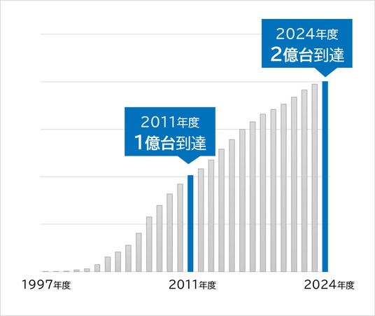 2011 年度~2024 年度までの 12 年で累計 2 億台を突破。