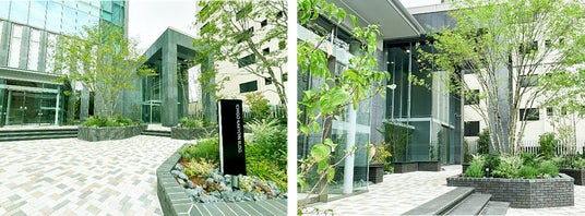建物のエントランスに繋がるアプローチや周囲には、四季折々に咲き彩る花や宮城県の県木であるケヤキをベースにミックスされた樹木により、一年を通してさまざまな表情が楽しめます。アプローチの高低差を少なくし、床材を全面的に変更、植栽に囲まれて休憩できるベンチスペースを新設しました。緑視率を高めることで、環境面での効果に加え、リラックスやリフレッシュ効果、ストレス軽減、集中力や快適性の向上といった効果が期待され、いちご花京院ビルで働くテナントの皆さまが心身共に健康で快適に過ごせる環境を目指しました。