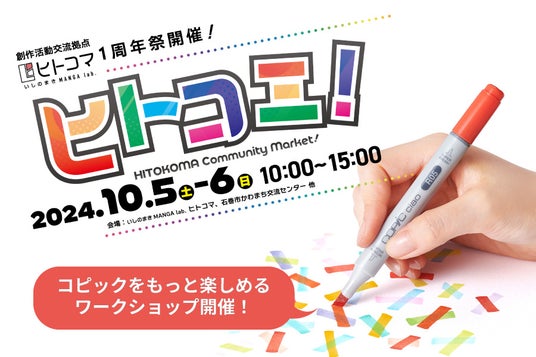 現在世界70カ国以上で販売されている画材ブランド「コピック」を取り扱う株式会社トゥーマーカープロダクツ(本社:東京都目黒区、代表取締役社長:石井 剛太)は、10月5日、6日に開催される宮城県石巻市の創作活動交流拠点『いしのまきMANGA lab.ヒトコマ』の1周年イベント「ヒトコミ!」に出展します。