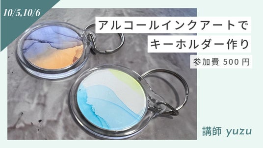 石巻在住のインクアーティスト、yuzuさんに話題の「アルコールインクアート」を教えてもらうことができ、作った作品はオリジナルキーホルダーとしてお持ち帰りいただけます!