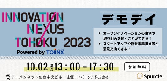 スパークル株式会社(所在地:宮城県仙台市、代表取締役:福留 秀基)はこの度、東北地域の企業と日本全国のスタートアップ企業をつなげるビジネスマッチングプログラム『INNOVATION NEXUS TOHOKU 2023』の最終イベントとして、『INNOVATION NEXUS TOHOKU 2023 デモデイ』を開催いたします。
